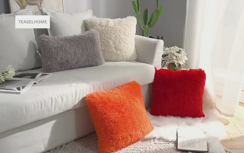 2 Faux Fur Fluffy Plush Pillow Cushion Cover Case
