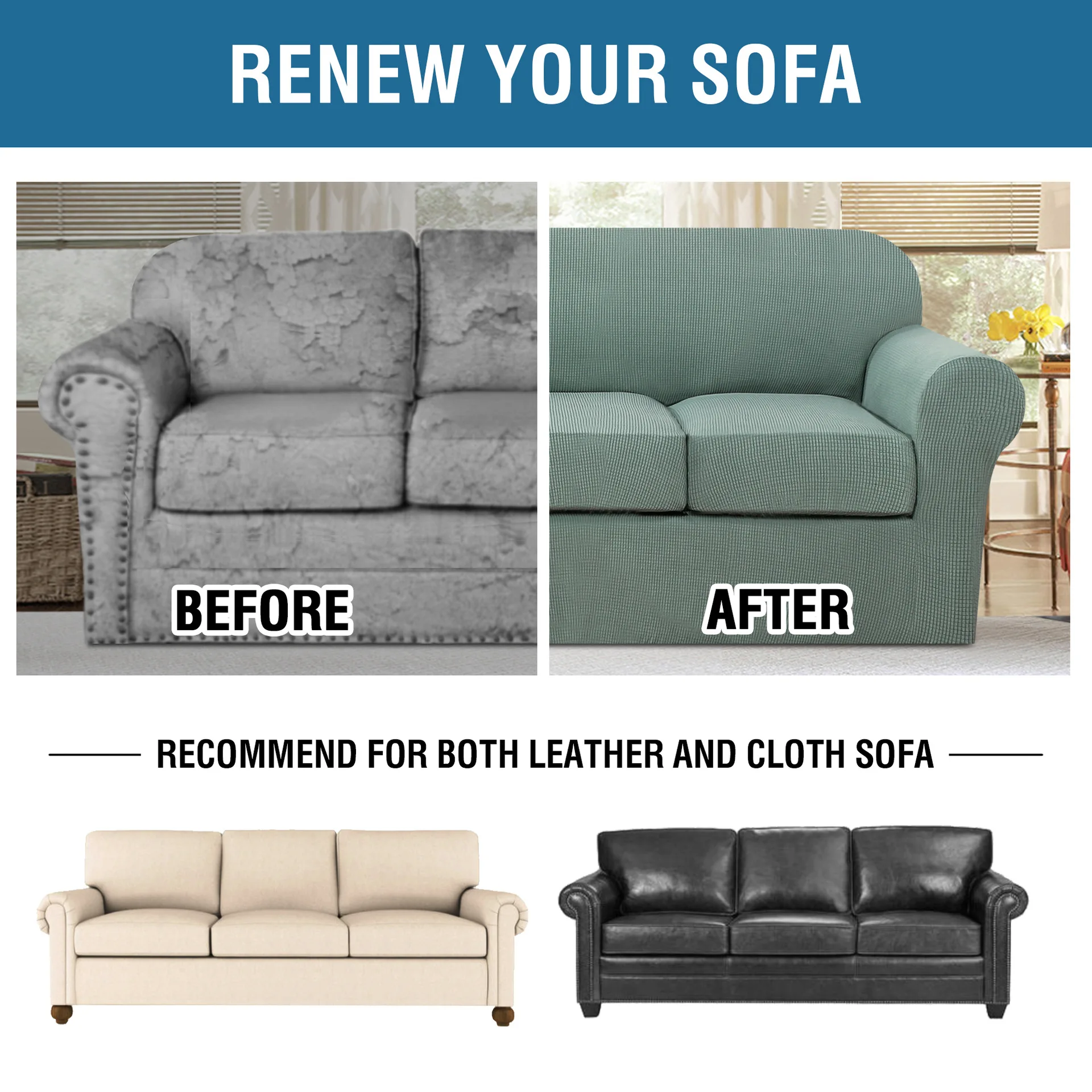 Our couch cover for cushion couch are made of stretchy fabric with a soft texture for a luxury look, which also make our fitted sofa protectors best suitable for many types of sofas. Our sofa slipcovers can instantly put family rooms and living rooms in a vacation state of mind which also brings feeling of breathable, skin-friendly, smooth and soft to the touch.